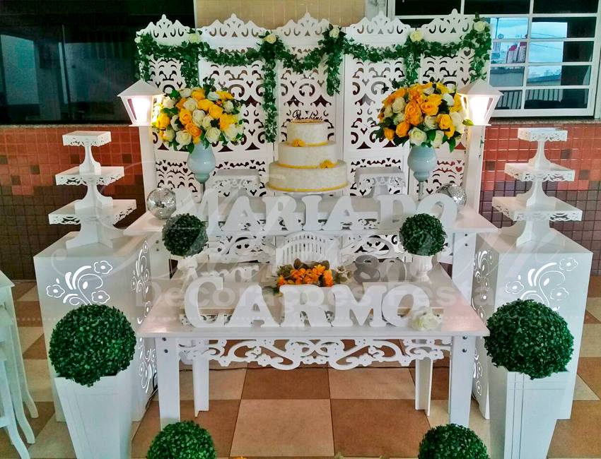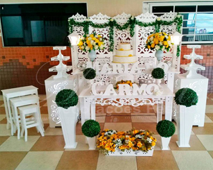 Aluguel Decoração Aniversários Noivado e Casamento Dourado Branco e Preto em Rústico.