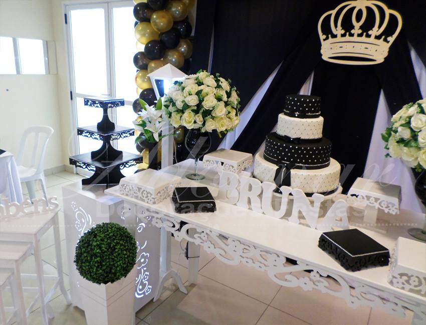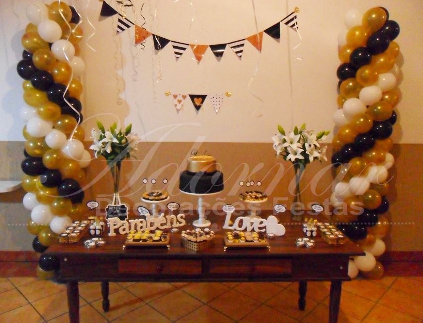 Aluguel Decoração de Aniversário Preto Dourado e Branco Com 1 Mesa em Provençal.