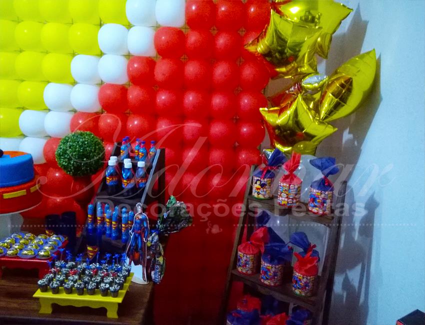 Aluguel Decoração Super Heróis Superman e Mulher Maravilha Com Uma Mesa em Rústico.