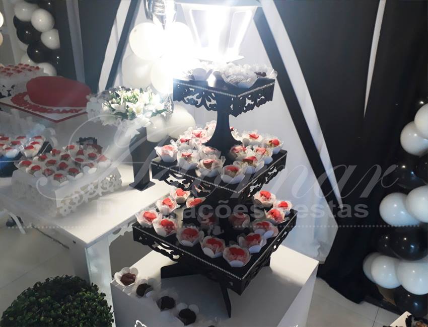 Aluguel Decoração de Aniversário Adulto em Preto e Branco Com Uma Mesa.