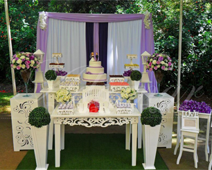 Aluguel Decoração Casamento e Noivado Lilás Roxo e Branco Com Duas Mesas em Provençal Tema Completo Para Festa Cerimonial...